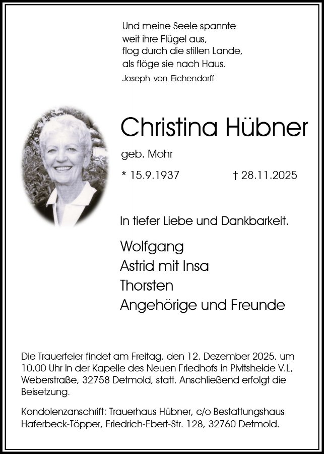 wir wünschen Ihnen von Herzen viel Kraft, dass Sie Menschen um sich haben, die Ihnen in dieser schweren Zeit beistehen und Halt geben. Zusätzlich können Sie auf dieser Gedenkseite Erinnerungen teilen und so das Andenken gemeinsam wachhalten.