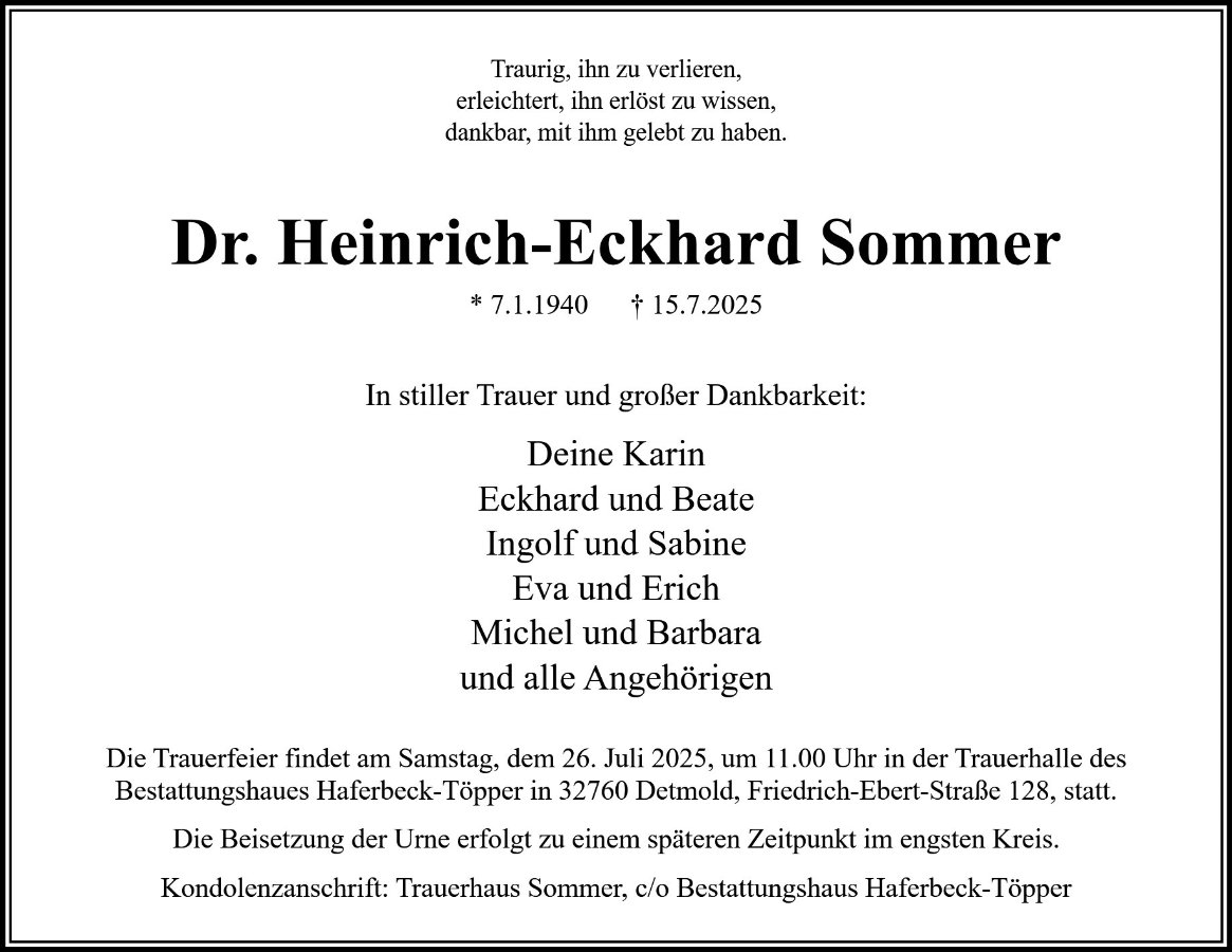Dr. Heinrich-Eckhard Sommergestorben am 15. Juli 2025