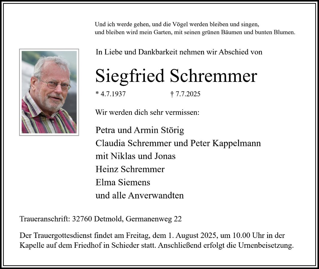 Siegfried Rudolf Schremmergestorben am 7. Juli 2025